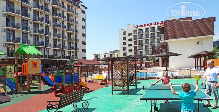 Гостиничный комплекс Эмеральд тоже находится в Витязево, в 10 минутах от моря. Территория комплекса симпатично оформлена и находится под надзором охраны, что обещает безопасность (а это - очень важно, когда речь идет о семейном отдыхе). Два бассейна с детской зоной, игровая комната и детская площадка для малышей, с которыми занимаются воспитатели и аниматоры, развлекательные программы по вечерам - все это приятно разнообразит каникулы и даст все отдохнуть. В гостиничном комплексе Эмеральд есть и ресторан, и бар с напитками и попкорном для детей.