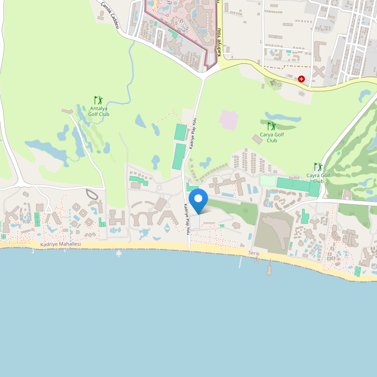 Отель расположен на живописном побережье Средиземного моря в курортном местечке Белек в 20 км. от международного аэропорта Анталии и в 30 км. от центра Анталии на площади 1000.000 м² с собственным песчаным пляжем протяженностью 200 метров, и пирсом 150 метров. Уникальная архитектура отельного комплекса дарит своим гостям комфорт и ощущение простора.