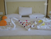 Приехали мы в 10 часов утра, а так как заселение происходит только после 14.00, то нам предложили комнату сразу, но с доплатой. т.к. был маленький ребёнок и нам его надо было хоть переодеть. Доплатили 70 $ за 14 дней. Это по-сути единственный минус нашего отдыха. и то эта...