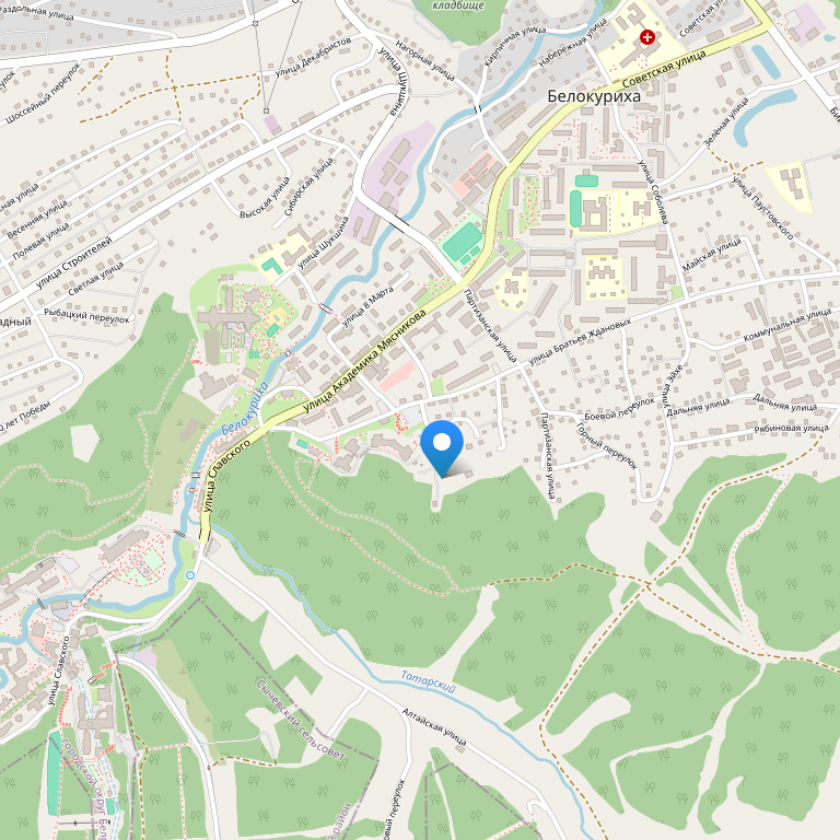 Отель находится в начале курортной зоны, мимо ходит маршрутный транспорт, рядом, аптека, супермаркет. Недалеко от гостиницы санатории «Здравница Кузбасса» и «Белокуриха», ГРК «Беловодье» (где находится аквапарк)