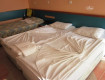 Номер: "-" древний телевизор с двумя русскими каналами (музыкальный и ОРТ), "+"кондиционер работал исправно, горячая вода с перебоями, убирали в номере через день,"-" в ванной не хватало коврика.
