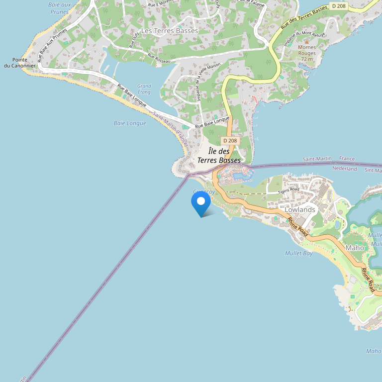 На главной дороге острова поверните налево к Мариго (французская часть острова). Проехав французскую границу, поверните налево. Вход в отель будет находиться слева от Вас.