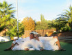 возле бассейна можно было смело загорать на шезлонгах, как летом)