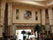 Впечатляющий ресепшн. оформленный картинами и декорированной мебелью. В центре холла расположен бар, окруженный аквариумом с красивыми рыбами.