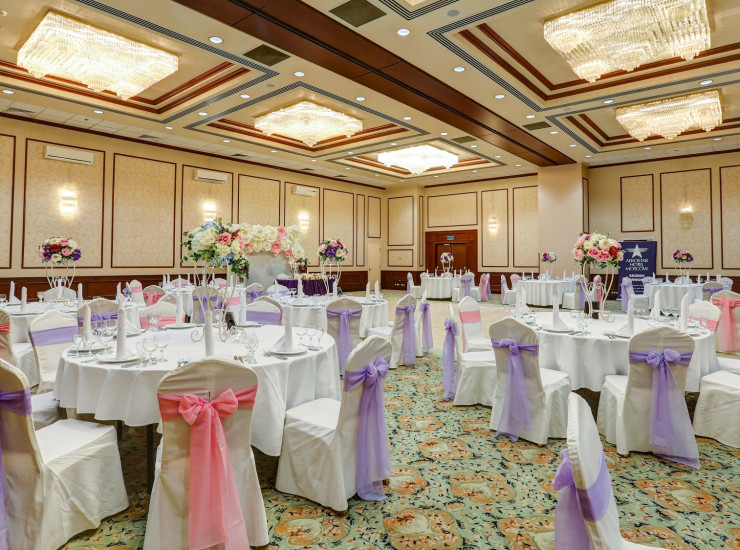 Самый большой и представительный зал отеля, расположенный на 1 этаже. Площадь 320 кв.м, максимальная вместимость 330 человек.