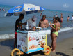 море-мелкое ,черный вулканический песок( некоторые люди думают что все море прозрачное,был шторм водоросли выносило