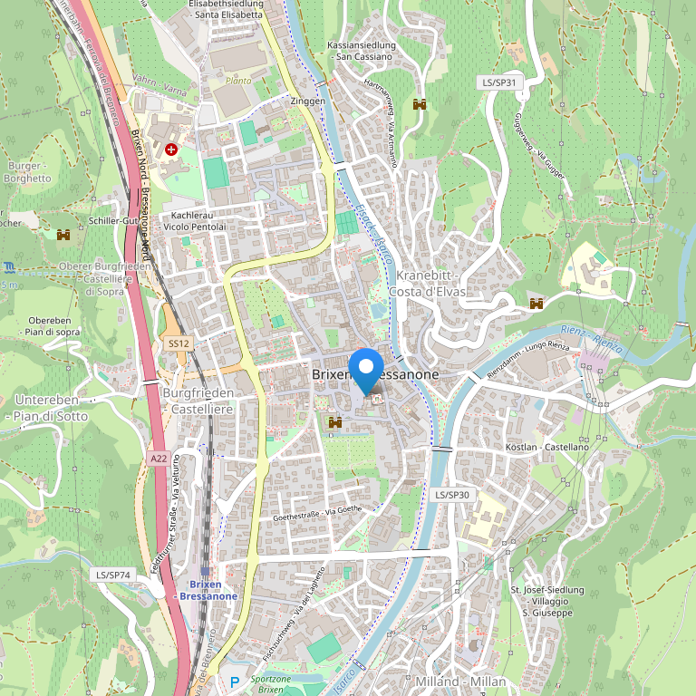 Отель расположен в средневековом городке Бриксен, в солнечном месте, в окружении живописной природы, рядом с берегом реки Rienz. За несколько минут вы можете дойти до романтичного старого города с его маленькими улочками и аркадами, магазинами, ресторанами и многочисленными достопримечательностями.