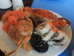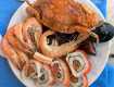 От вкусной еды ломились столы: крабы, креветки, устрицы, множество видов мяса и зелени.