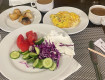 Приехали заселяться около полуночи, нам тут же предложили перекусить с дороги, что приятно удивило, так как время ужина давно закончилось. Официанты в белых рубашках разнесли каждому по порции местного кошари (рис с мелкой вермишелью), с говядиной и курицей, вполне себе вкусно. Тут же в столовой объявились местные...