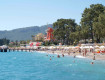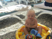 Сначала напугал пляж - крупная галька, но приноровились, купили плавательные тапки, а ребенок нормально ходил по камням. Зато море кристальное, оч красивого цвета, прозрачное и чистое.
