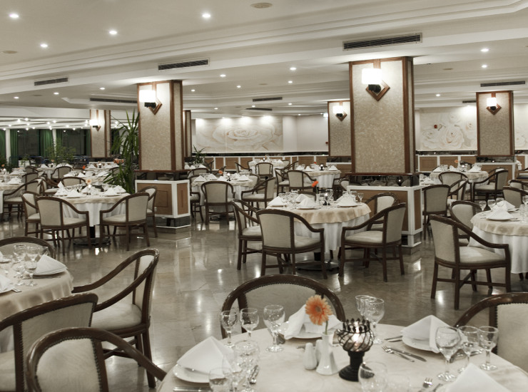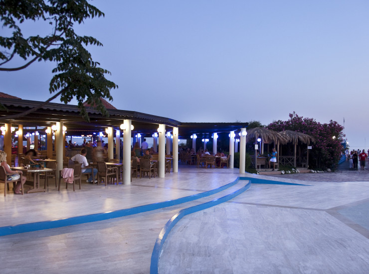 К услугам гостей 24 часа в сутки система Ultra All Inclusive, 1 главный ресторан с разнообразной интернациональной кухней, 2 ресторана закусок, рестораны аla carte, 5 баров. 2 больших бассейна под открытым небом и аквапарк с11 горками и отдельным бассейном с детскими горками, крытый бассейн и джакузи, все это сделает Ваш отдых незабываемым.