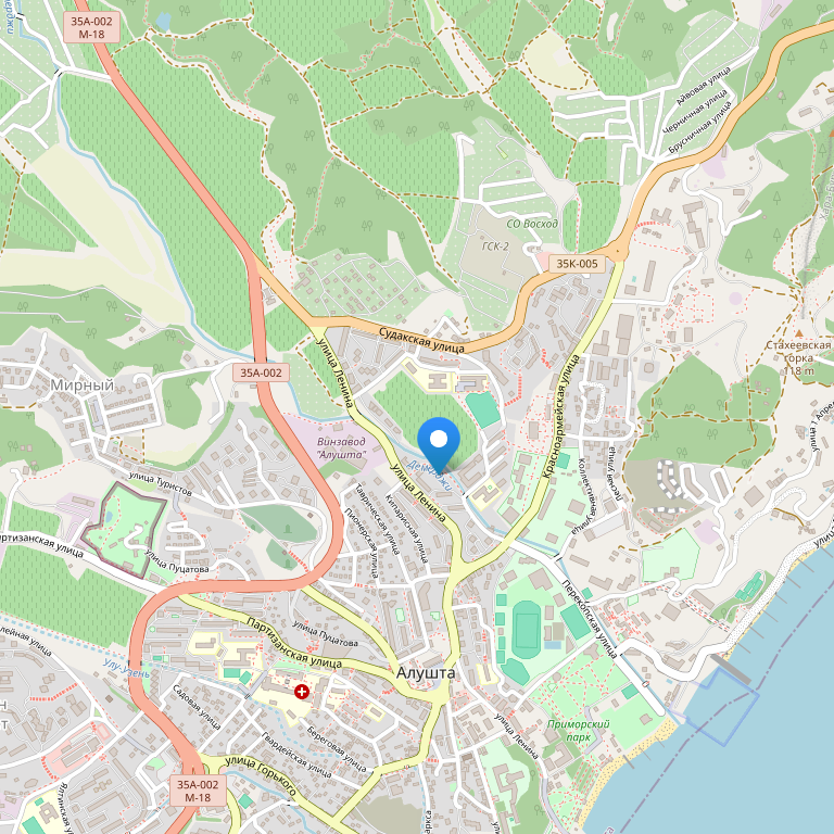 Этот небольшой уютный отель расположен в тихом месте в Алуште, в 500 метрах от площади Советская и центра, где вы найдете различные магазины. В шаговой доступности также находится прибрежный парк с инфраструктурой для отдыха. Пляж в десяти минутах прогулочного шага (около 800 метров) по тенистой аллее.
