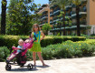 Хотелось дать совет мамам с малышами - выбирайте отели с маленькой территорией. Нас поселили в самый дальний корпус от ресепшен, сказали, что свободных ближе нет, даже за ..$.. Аренды колясок нет (ни платно, ни бесплатно).
