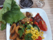 Шведский стол. Овощи, салаты, зелень. Выбор горячего не велик: нагеццы, иногда кура, запечённые овощи, макароны... Один раз давали дыню, в основном был арбуз.