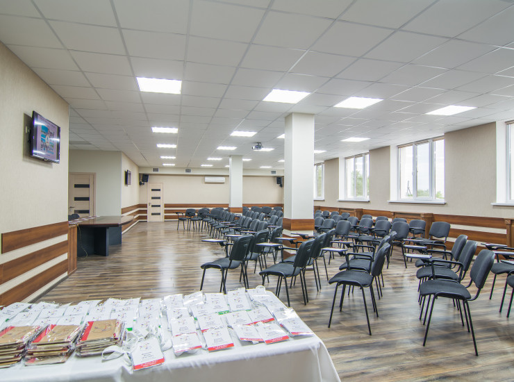 Конференц-зал Комплекса оснащен мультимедийным проектором, флип-чартом, экраном, стерео системой, что позволяет наиболее глубоко и функционально организовать проведение различных мероприятий. Высокий уровень организации обеспечивают: специально разработанный стильный дизайн, высокий уровень сервиса, система регулировки микроклимата, телефонная сеть, услуги копирования и распечатки документов, оформления зала.
