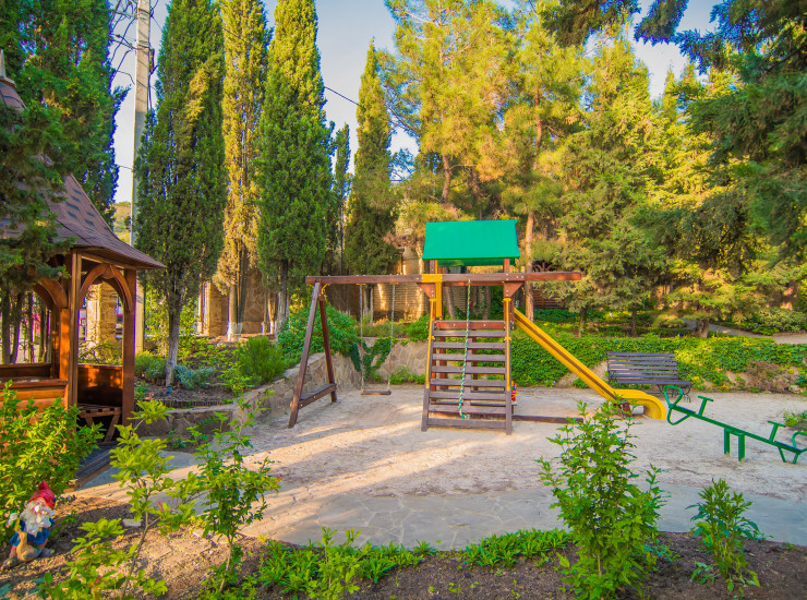 Гости "Альпийской долины" смогут насладиться незабываемым отдыхом в уютной парковой зоне. Кафе, работающее на территории комплекса, порадует Вас широким выбором прохладительных напитков и целебных крымских чаев. Для комфортного отдыха наших маленьких гостей в "Альпийской Долине" оборудована детская площадка в отеле "Камелот".