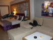 1. Заселение. Заселили нас быстро, без задержек. В холле поразила своей красотой огромная люстра, которая свисала через все этажи. В центре холла приветственные напитки, лукум, конфеты.