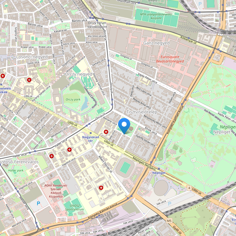 Отель расположен в районе Неплигет и Групама Арена. От отеля можно легко добраться от центра города на линии метро M3, а также улицы Ульльи, главной улицы, соединяющей международный аэропорт Листа Ференца с центром города.