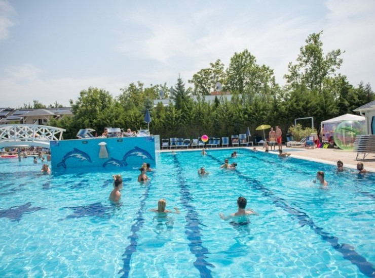 Новому корпусу принадлежит наружный бассейн площадью 400 квадратных метров и оснащённый аттракционными оборудованием. Кроме этого здание располагает двумя термальными бассейнами: один внутри, а другой - внешний. Температура воды: 18-22 C. На берегу бассейна нашим гостям предоставлены лежаки и зонты от солнца.