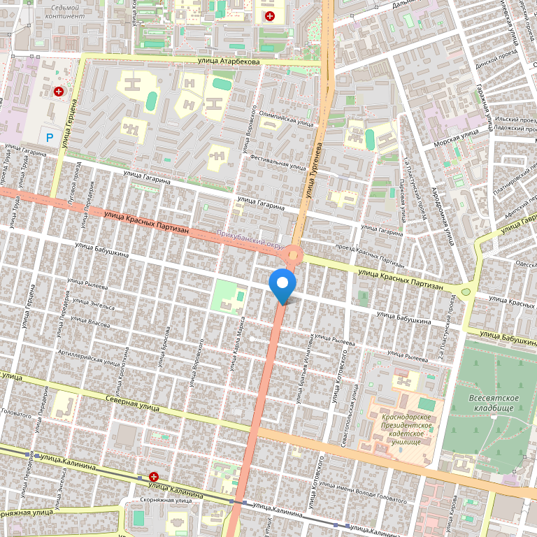 Отель расположен в 1,5 км от центра города Краснодар и 20 минутах ходьбы от Красной улицы, в 4 км от Выставочного центра и 6 км от ж/д вокзала. Международный аэропорт находится в 18 – 20 км от отеля.