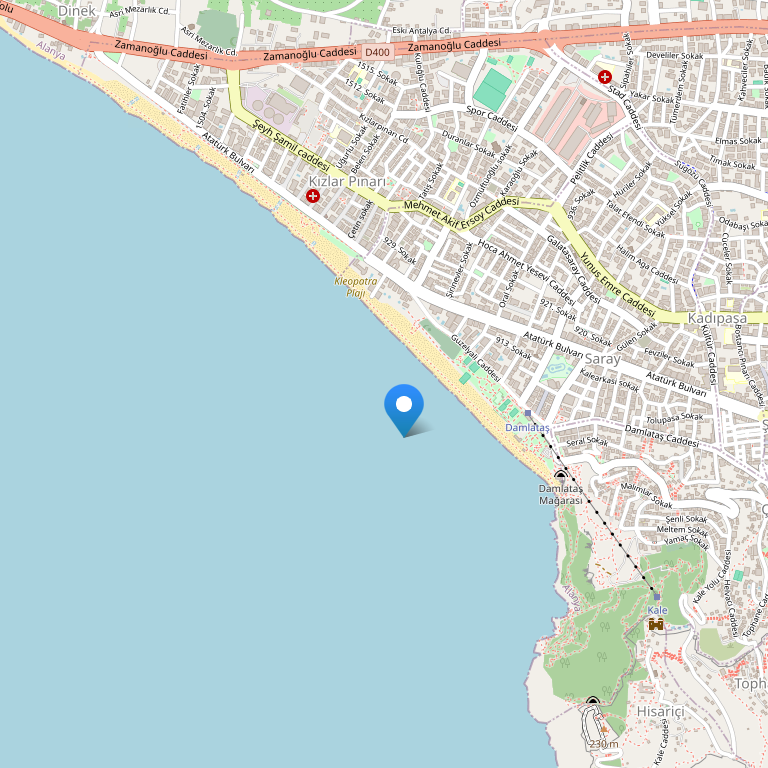 МЕСТОРАСПОЛОЖЕНИЕ: Отель расположен в 100 метрах от прекрасного пляжа Клеопатры. В 1км от центра города, от автовокзала 2 км.от крепости Алании в 3 км..От Аэропорта Газипаша 45 км.,от Аэропорта Анталии 120 км.Отель расположен на территории 1 700 кв.м .В отеле 107 номеров на 213 спальних мест .