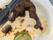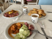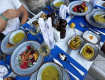 В ресторане обед по расписанию. Питание не отличалось разнообразием. Посуда со сколами. Стаканов и приборов не хватало, пришлось купить свой стакан...