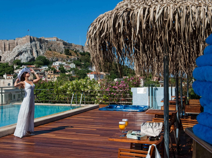 During the summer period the outdoor swimming pool with a magnificent view to the Acropolis is an ideal place for relaxing and enjoying the Greek sunshine.