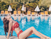 Отдыхали после свадьбы, мини свадебное путешествие так сказать)) Номер был стандартные, одна двуспальная кровать, ванна, душ, туалет, раковина, телевизор и кондиционер, всего хватало, ничего лишнего, даже чайник с посудой стоял, это видимо для тех, кто не наелся)))) Два бассейна открытых на территории...