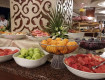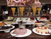 Еда на любой вкус : мясо разных видов , гарнир,салаты, пирожное, мороженое, молочные коктейли,торты, и другие десерты-всё супер!
