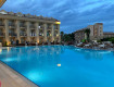 Выбрали из-за пляжа- песочный, большой, комфортный пологий вход! ( в некоторых отелях в Сиде вы будете идти по колено метров 100)- здесь же супер! Лежаков всегда хватало! Да, идти минут 5-7 , но при таком питании, как здесь - это огромный плюс! Кому лень возвращаться на обед в основной ресторан, вы можете...