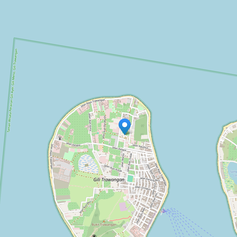 Отель расположен на побережье живописного острова Гили-Траванган, в окружении пышной тропической зелени, рядом с мечетью, в получасе езды на катере от порта Бангсал.
