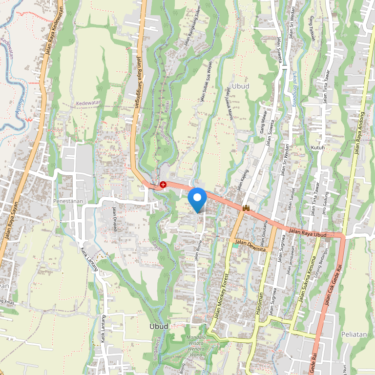 Коттедж расположен посреди рисовых полей, в городе Убуд, в тихом и спокойном месте.