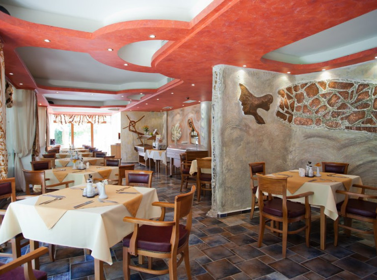 The main restaurant of boutique hotel DIT ORPHEUS has a capacity of 50 seats indoors and further 30 seats outdoors on the terrace, which is located amidst the romance of fresh greenery and tender whisper of the pool. A very carefully selected menu of specialties is offered. Breakfast includes a variety of hot and cold appetizers, fresh juices, soft drinks, coffee and tea. The breakfast type is a la Carte and it is provided from 07:30 - 10:30. Guests are welcome to enjoy their meals at the restaurant. Dinner offers an exciting bouquet of various starters, soups, salads, main courses and delicious desserts.