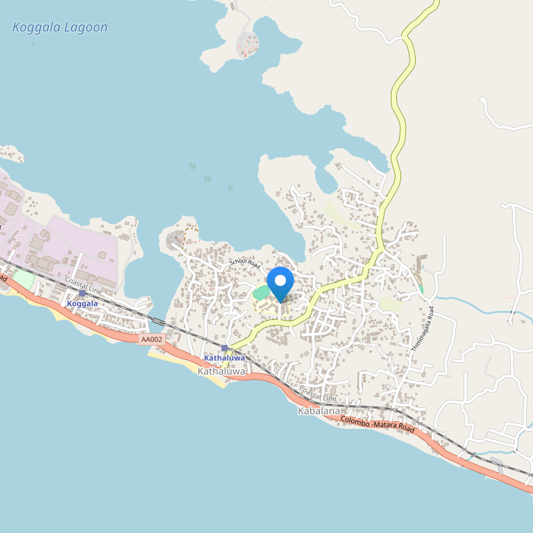 Отель расположен в городе Коггала, всего в 900 метрах от пляжа, в 17,3 км от стадиона для крикета, маяк Галле, а также от форта Галле, 167 км до международного аэропорта Бандаранаике.