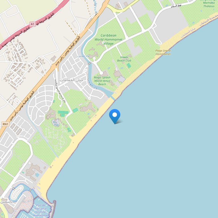 Расположение : отель расположен на берегу моря, в 7 км от центра г. Хаммамет.