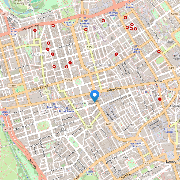 Отель расположен на углу в Brook Street и Davies Street, рядом с Hyde Park, Park Lane, Bond Street и Oxford Street. Международный аэропорт Heathrow находится в 50 минутах езды от отеля.