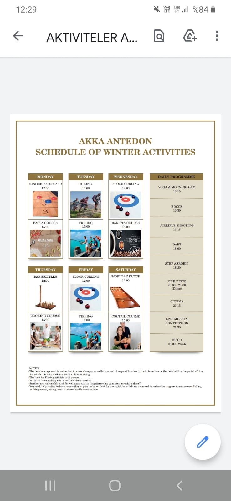 Горки уже работают, бассейн у горок тоже (он подогревается), спа центр (хамам и сауна) раьотают круглогодично.