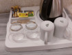 Интересный интерьер в номерах. Белоснежное пастельное. Меню подушек. Есть сервис подготовки номера ко сну, но мы не пользовались. Халаты по запросу, а так же зубные и бритвенные наборы. Мини бар пополняют ежедневно. Чай/кофе/сливки тоже приносят.