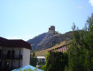 Отель расположен на склоне практически в 50 метрах от воды под самыми стенами генуэзской крепости, поэтому открывается панорамный вид на Судакскую бухту и на зубчатые башни.