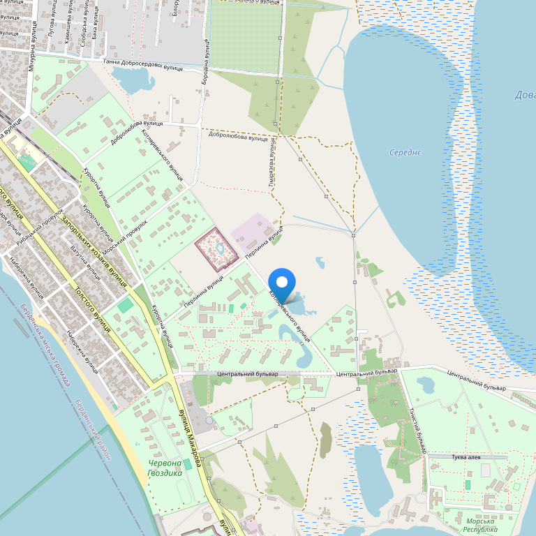 Расположение Санаторий "Лазурный" расположен на берегу Азовского моря у основания Бердянской косы.