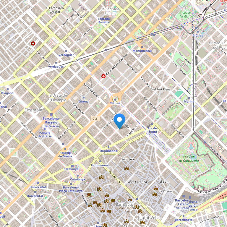 Этот элегантный отель расположен в 250 метрах от станции метро Paseo de Gracia и проспекта Пасео де Грасиа. Площадь Каталонии находится в 5 минутах ходьбы от отеля.