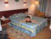 Номер большой, чистый. Мебель нормальная, кондиционер работает всегда, регулируется. Сантехника качественная. Уборка каждый день. Оставляли по доллару - убирали отлично, пусть будет человеку приятно.