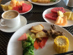 Приехали часов в шесть вечера, заселили довольно быстро, но не в наш зарезервированный номер. Наш был занят, поэтому на ресепшн предложили другой "очень вери гуд" и "очень лучше" ))) И действительно, на ночь мы разместились в основном корпусе, на последнем этаже, с чудным видом на море. Номер был чистенький, с большой душевой с абсолютно прозрачными...