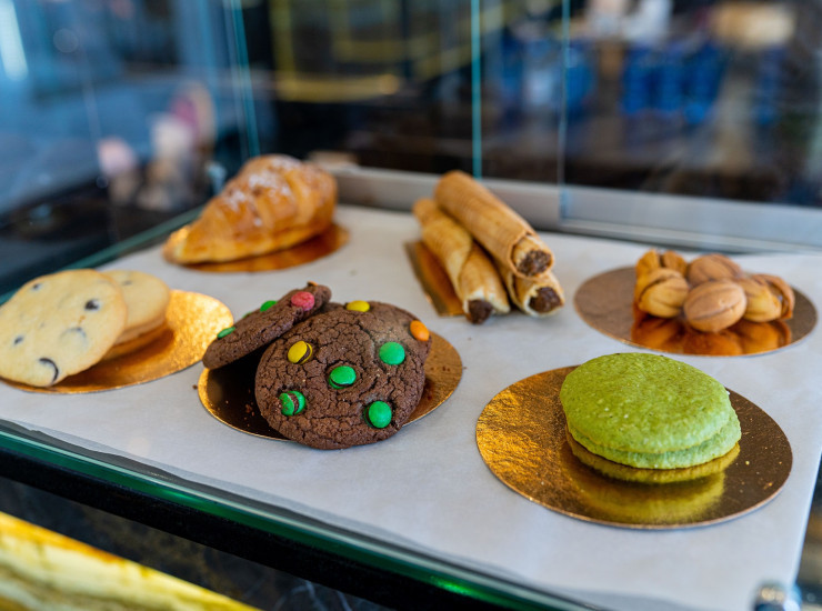 В меню Кофейни представлен широкий выбор десертов собственного производства, среди которых различные пирожные, торты и свежая выпечка. К десертам предлагается ароматный кофе, чай и прохладительные напитки.