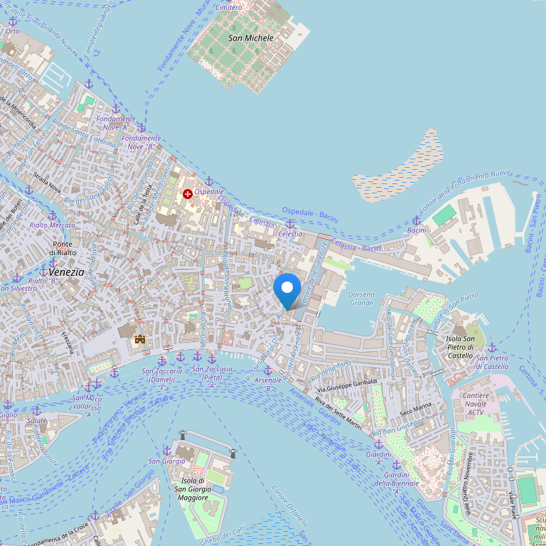 В отеле: 53 номера, оформленные оригинальными тканями и картинами. Каждый номер отличается друг от друга, цветом шелка и парчи, чтобы каждый клиент смог насладиться роскошной обстановкой. Стандартные номера (18-22кв.м.) с видом на город, номера ”Deluxe” (18-22кв.м.) с видом на лагуну и остров San Giorgio, Junior Suite (25-32кв.м.) с видом на лагуну и Сан Марко.