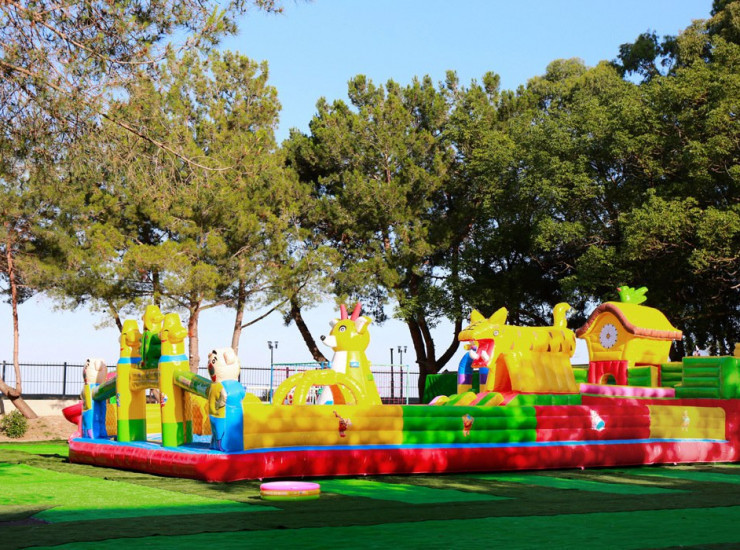 Детская площадка 450м2 с игровым городком и шезлонгами