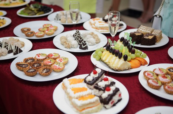Шведский стол, с широким ассортиментом представленных блюд европейской ,русской, абхазской кухни .