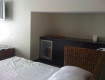 Номер был просторный вместимостью 2+1 (двуспальная ,односпальная кровати плюс полноценный диван) в стиле "модерн". Мини бар с охлаждением, сейф и ж\к телевизор.
