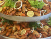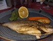 Через день была семга- очень вкусно. Фрукты: яблоки, груши, арбузы, очень вкусный виноград.