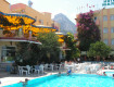 Хороший ухоженный сад, много зелени, цветов, в том числе у бассейна. До моря 5 минут ходьбы. пляж очень чистый. Питание понравилось.